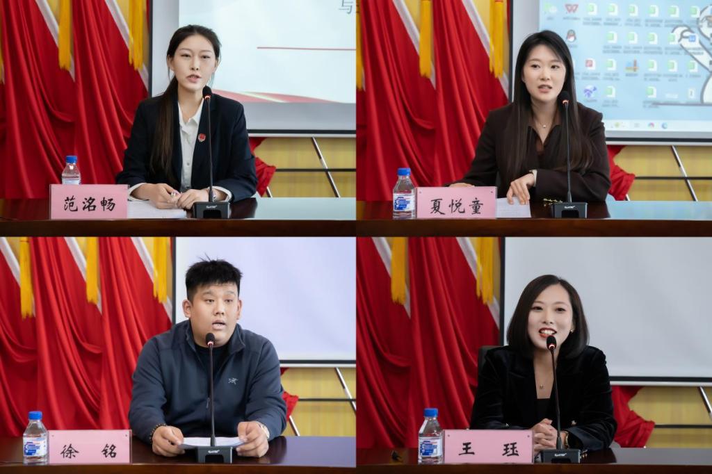 永吉县司法局西阳司法所所长范洺畅校友以亲身经历,从司法所“人民调解、社区矫正”的日常工作,到“大一打基础、大三定方向”的考公攻略,为同学们今后的学习生活和未来就业提供指导和帮助;吉林阳光博舟律师事务所律师夏悦童校友从“理解”、“目标”和“坚持”等视角,与同学们分享了成功经验;吉林省仕合教育新媒体运营部部长徐铭校友分享了题为“贫穷赠予我的礼物”成功创业经验,以“尊严靠自己挣来”“向下扎根才能向上生长”等深刻领悟,激励同学们把握现实、立足实际、扎实奋斗;广东广和(长春)律师事务所律师王珏校友以“青春之名,赴法治之约”为题,从“藏蓝的底色,滚烫的青春”警院生活,到“我走过的路,想讲给你听”,与同学们分享了成功经历。