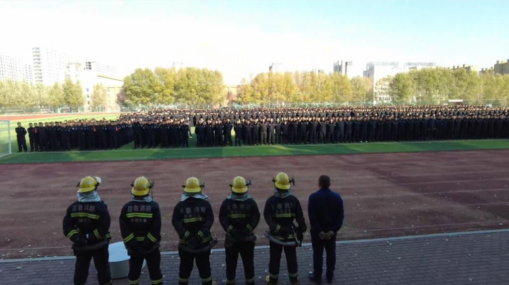 在第34个全国消防日来临之际,为提升全校师生消防安全意识与应急处置能力,保卫部联合政治处、学生工作部、后勤管理处开展校园秋季消防应急疏散逃生演练。演练邀请合隆政府专职消防队进行指导,共有5100余名师生共同参与演练。