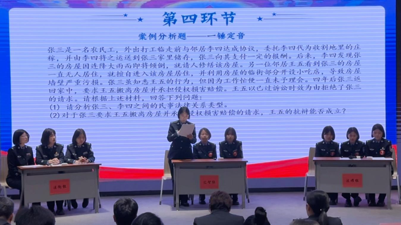 本届法律知识竞赛,共有130组选手踊跃报名参赛,5支实力强劲的队伍凭借扎实的法律知识储备脱颖而出,成功晋级决赛。决赛采用团队协作、现场竞答的形式,精心设置“初露锋芒”“眼疾手快”“智勇双全”“一锤定音”等四个环节。各环节题型丰富、难度递进,全方位考验参赛队伍的法律知识积累、快速反应能力与团队协作默契。最终,由律赢组荣获一等奖,崇法组、法曜组获得二等奖,法衡组等三支队伍获得三等奖。