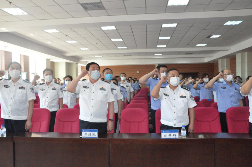 会上,新吸收的预备党员宣誓,全体党员重温入党誓词。