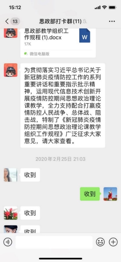 思政部积极响应教育部、省教育厅“停课不停教、停课不停学”的工作要求及学院的相关教学要求,针对疫情期间的线上教学,在开学前制定了《新冠肺炎疫情防控期间思政部教学组织工作规程》,并多次召开专题会议进行具体工作安排,做到了分工明确,相互配合。 组织概论课、国史课、就业创业课三个备课小组,多次召开集体备课视频会议,集中研讨疫情防控期间的教学共性问题。大家达成一致意见,充分利用当前我院学生和教师以及全国抗击疫情工作中出现的典型人物和感人故事,向学生展示中国特色社会主义制度集中力量办大事的实践案例,将疫情防控这场特殊的战斗升华转化为思政课育人的鲜活素材,弘扬爱国主义精神。重新修订了概论课、国史课和就业创业课的线上教学计划,做到有序、有效开展线上教学。目前,全体思政教师都在有条不紊的开展线上教学工作。一次次顺利流畅的互动体验、一页页精心设计的讨论作业背后,是老师们绞尽脑汁的努力。为确保线上教学不空堂,学生一个不落下,建立了课程跟踪抽查督导机制,确保“教师真在教、学生真在学”。